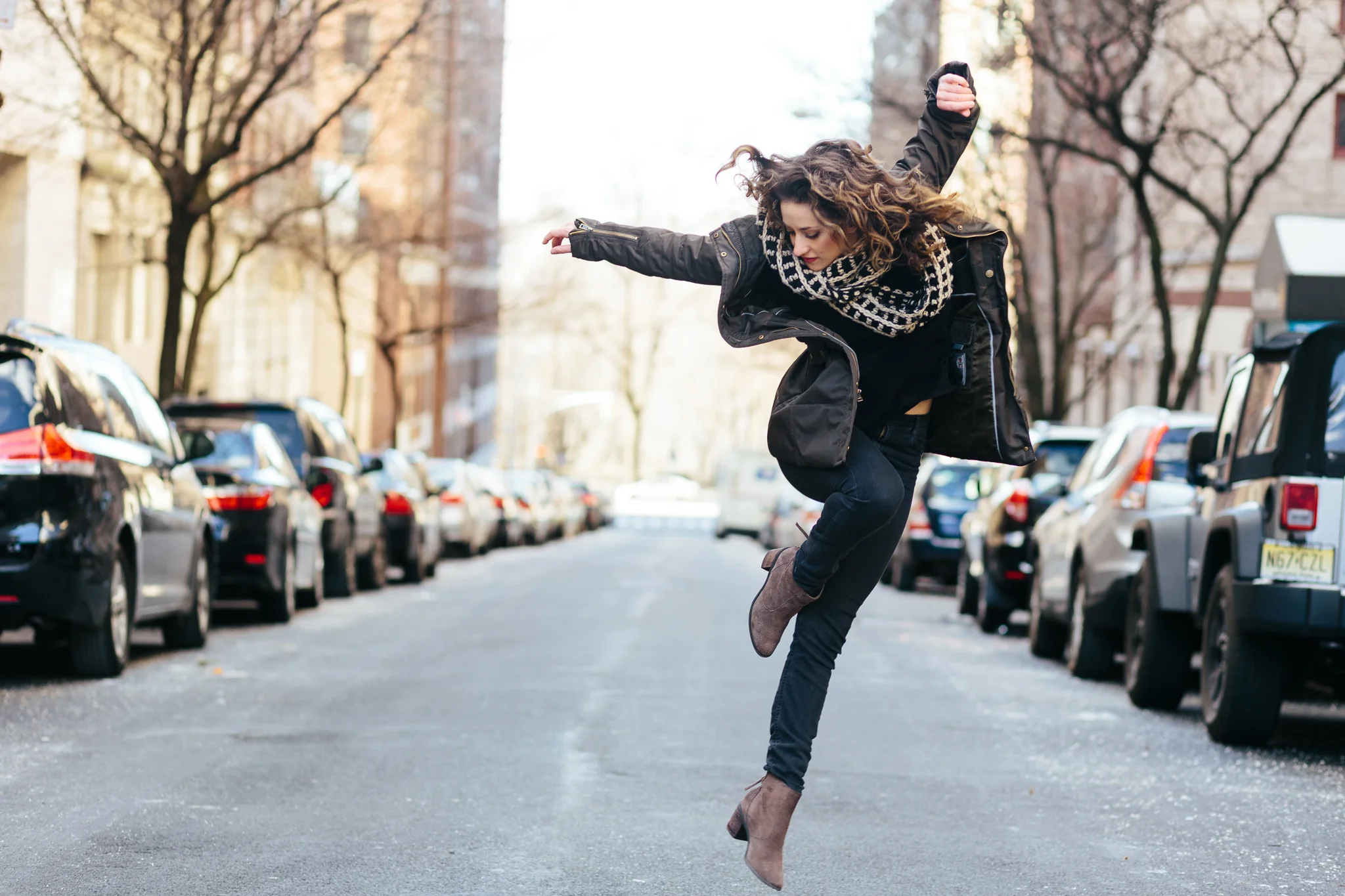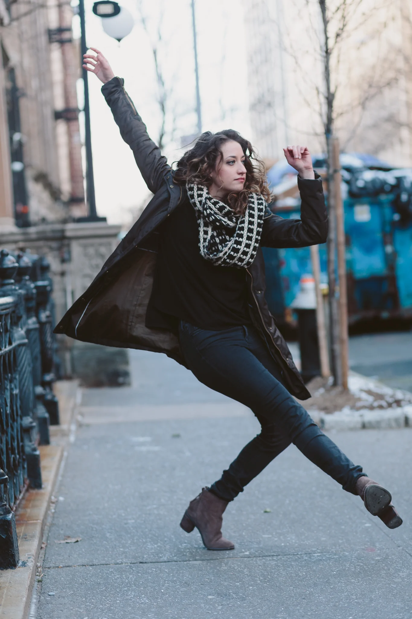 What’s really helped me through everything—whether I am working or not—is to always make time for things that make you happy. Whether it’s dancing, yoga, walking around the city, visiting your favorite spot, writing, playing music—it's about finding those things that continue to make you happy. This city is stressful. You can wake up feeling great, and then you go to the train, and it's delayed, and it’s begun snowing outside, and suddenly everything is awful. All of these things that can happen in the city can really bog you down, but you just always have to make time for things that you love. I do musical theatre, and that’s my thing, but my favorite thing to do is take a contemporary jazz class where I don’t really know anybody in there. They’re not the people I am auditioning with. The room is filled with people who want to dance, who are there for themselves. I love being in that energy and environment. I feel like it brings me back to my roots, to what I love most about dancing and how it makes me feel. That's what makes me happy. Make time for things like that. That’s the only way you’re going to get through this. Whether things are going well or not. That’s what keeps you going.